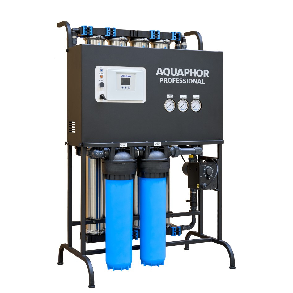 Система обратного осмоса APRO производительностью до 1000 л/ч предназначена для очистки воды от солей жесткости, содержанием до 2000 мг/л, хлоридов, органических веществ, бактерий и вирусов. Энергоэффективная компактная система является отличной альтернативой системе засыпных фильтров для очистки воды в коттеджах и загородных домах. Установка успешно используется в коммерческом и промышленном сегменте: в ресторанах, лабораториях, тепличных хозяйствах; в промышленности для малых технологических процессов, для паровых котлов, парогенераторов и т.п.