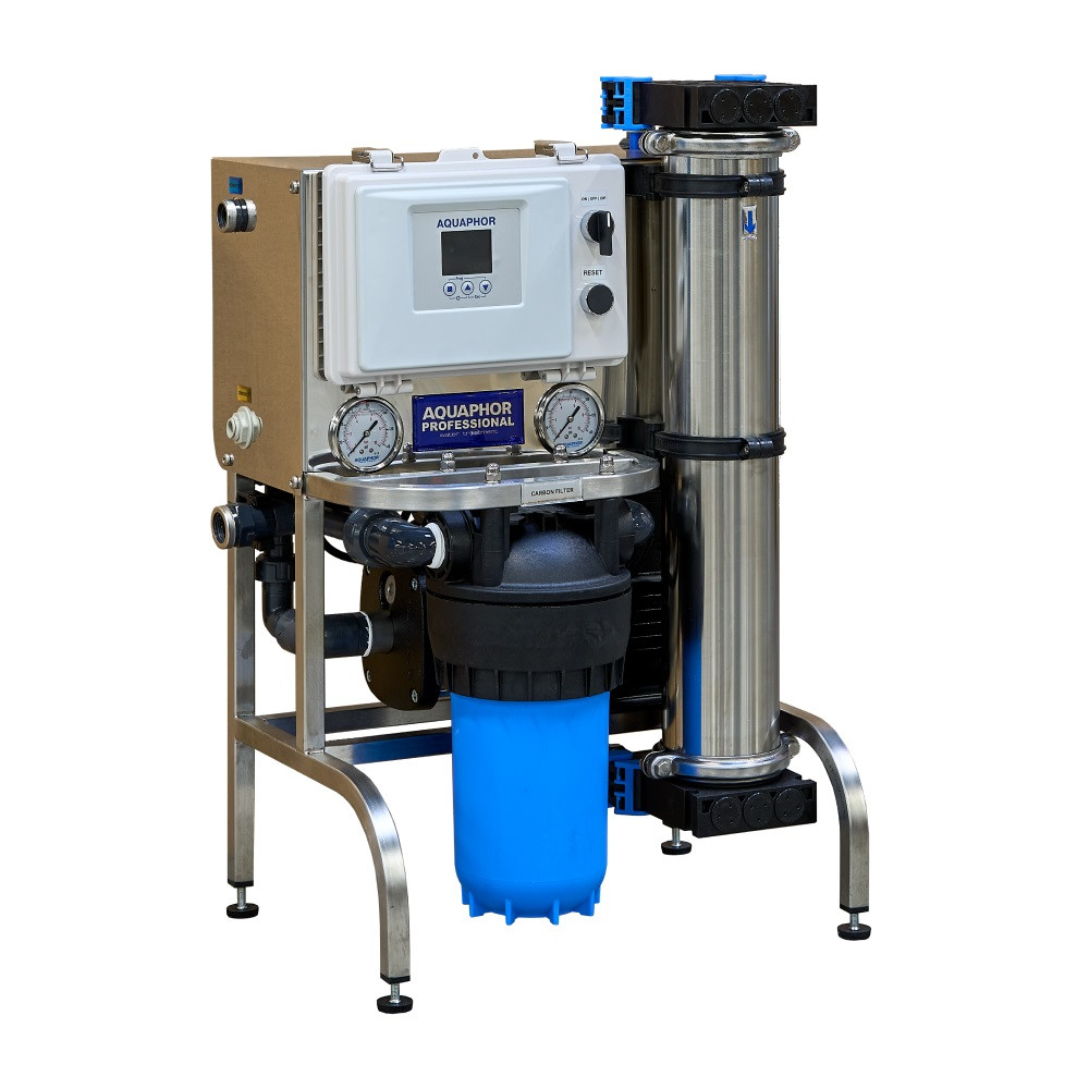Система обратного осмоса APRO SST производительностью до 150 л/ч предназначена для очистки воды от солей жесткости, содержанием до 2000 мг/л, хлоридов, органических веществ, бактерий и вирусов. Энергоэффективная компактная система является отличной альтернативой системе засыпных фильтров для очистки воды в коттеджах и загородных домах. Установка успешно используется в коммерческом и промышленном сегменте: в ресторанах, лабораториях, тепличных хозяйствах; в промышленности для малых технологических процессов, для паровых котлов, парогенераторов и т.п.